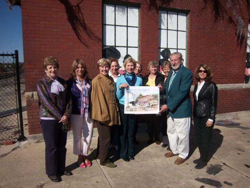 The New Bern Preservation Foundation President Joe Mansfield presents a commemorative print to Paula Lindsay, President of the New Bern Woman’s Club. The Club was the first to join the Depot 100 Campaign. New Bern’s Union Station is ready for total restoration.